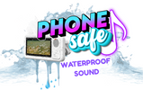 Waterproof cover with a speaker for your cell phone that hangs on your bathroom wall.